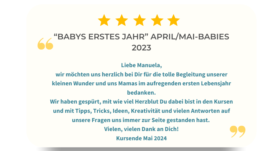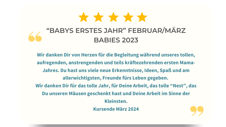 In den letzten Jahren habe ich über 200 Mütter, und ab und zu auch die Väter :-), mit ihren kleinen Wundern im Kurs „Babys erstes Jahr“ begleiten dürfen. Wir haben viel gesungen, gespielt und geklettert, gematscht und mit allen Sinnen die Welt erkundet. Die Bindung und die Bedürfnisse der Kleinen steht immer im Vordergrund. Wir haben viele Aspekte der bindungs- und bedürfnisorientierten Begleitung besprochen, diskutiert und erlebt. Jeder Abschied nach fast einem Jahr fällt mir jedesmal so so schwer!