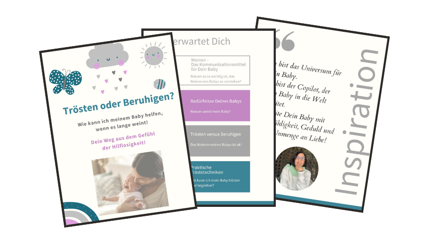 In diesem Ebook mit vielen Videos wirst Du einige Aha-Momente haben, die Dir helfen, Dein Baby besser zu verstehen und mit hilfreichen Tools wirst Du selbst gelassener mit dem Weinen umgehen und Dein Baby begleiten können!