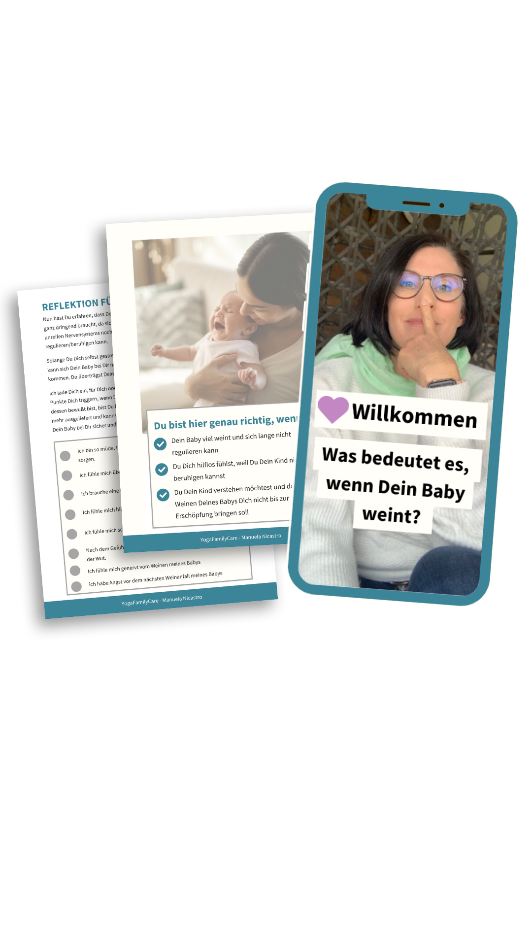 Hier bekommst Du wertvolles Wissen und Tools, um Dein Baby besser zu verstehen und das Weinen Deines Babys liebevoll und ohne Überforderung begleiten zu können.